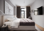 - byt je navrhnutý s dôrazom na dostatok prirodzeného svetla a vzdušnosť, čo umocňujú vysoké stropy až do 3,1 m a veľké francúzske okná s balkónom,